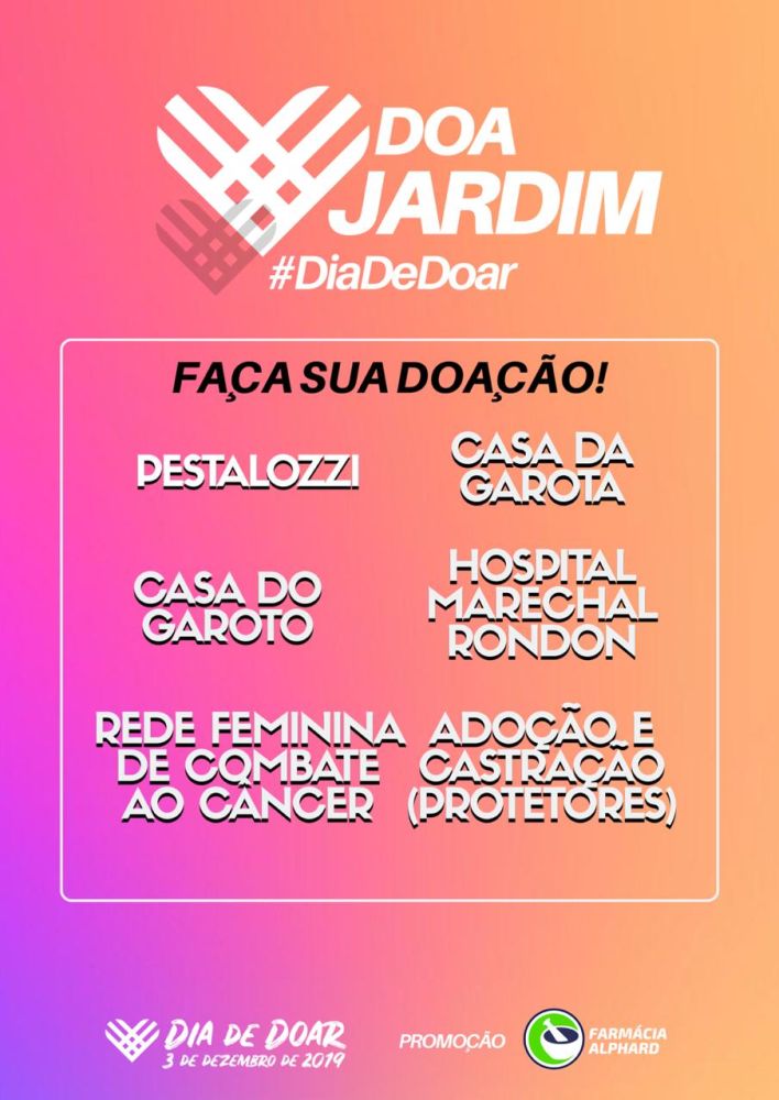 Com o objetivo de auxiliar instituições filantrópicas de Jardim (MS), está em vigor a campanha #DoaJardim.