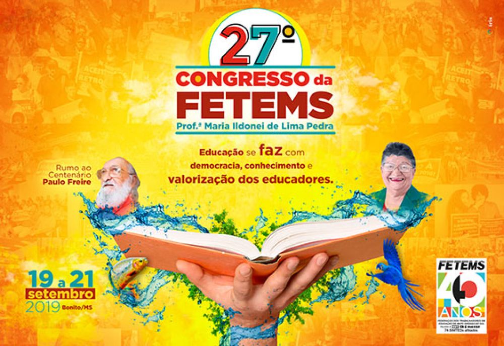 Entre os dias 19 e 21 de setembro, a Federação dos Trabalhadores em Educação de Mato Grosso do Sul (FETEMS) estará realizando o 27° Congresso Estadual da FETEMS “Professora Maria Ildonei de Lima Pedra”, no Centro de Convenções, em Bonito.