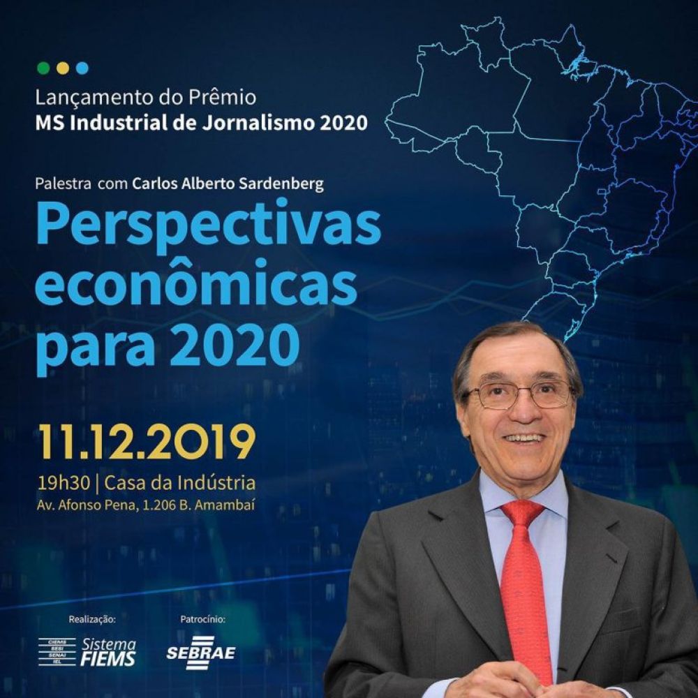 Na cerimônia, que será realizada às 20h00 no auditório do Edifício Casa da Indústria, em Campo Grande (MS), e conta com o patrocínio do Sebrae/MS, Carlos Sardenberg fará uma palestra com o tema “Perspectivas Econômicas para 2020”. Jornalista desde 1969, ele já trabalhou como repórter, redator e editor nos jornais O Estado de São Paulo, Jornal do Brasil e Folha de São Paulo, bem como nas revistas Veja e IstoÉ.