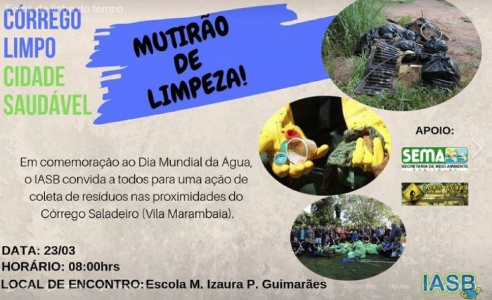 Serão feitas coletas de resíduos nas proximidades do Córrego Saladeiri (Vila Marambaia).