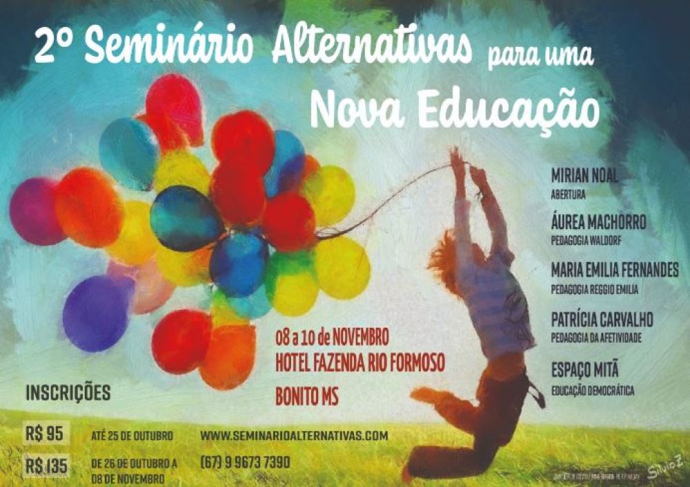 No período de 08 a 10 de novembro acontece, em Bonito, o 2º Seminário Alternativas para uma Nova Educação. O propósito do evento é permitir experimentar e se aprofundar nas práticas educacionais inovadoras que estão em desenvolvimento no Mato Grosso Do Sul atualmente.