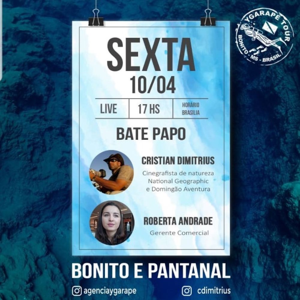 Nesta sexta-feira (10), a Agência de Turismo Ygarapé, localizada em Bonito (MS), realiza uma live a partir das 17h00 para falar sobre o impacto do coronavírus (Covid-19) no turismo de Bonito e Pantanal.