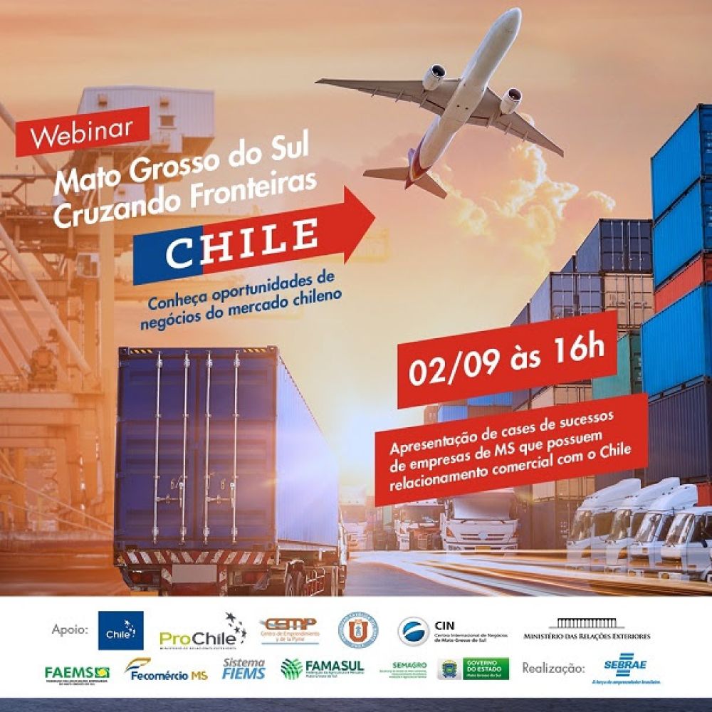 Empresários sul-mato-grossenses interessados em conhecer possibilidades de negócios no Chile já podem se inscrever para o webinar “Cruzando Fronteiras”, realizado pelo Sebrae/MS. O evento será transmitido on-line nesta quarta-feira (02), às 16h (horário local). As inscrições são gratuitas.