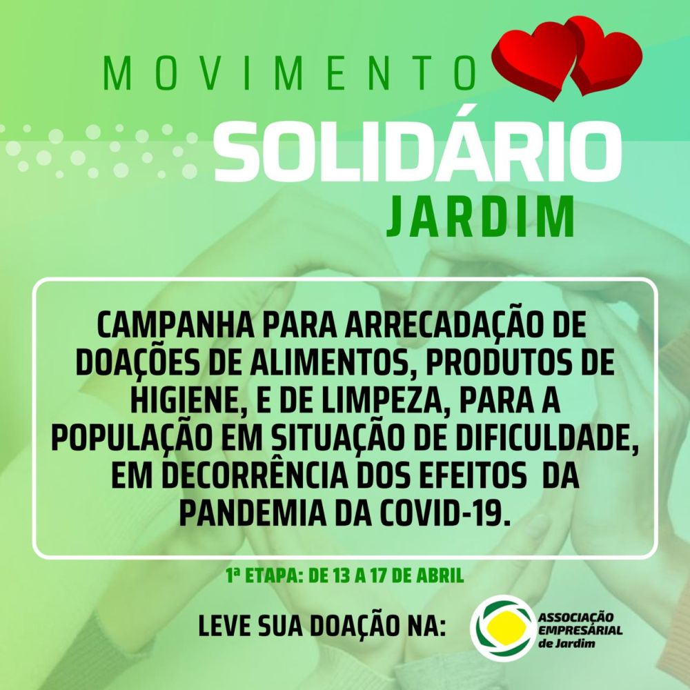 A AEJAR- Associação Emprearial de Jardim (MS) - lança nesta segunda-feira (13) o "Movimento Solidário Jardim".