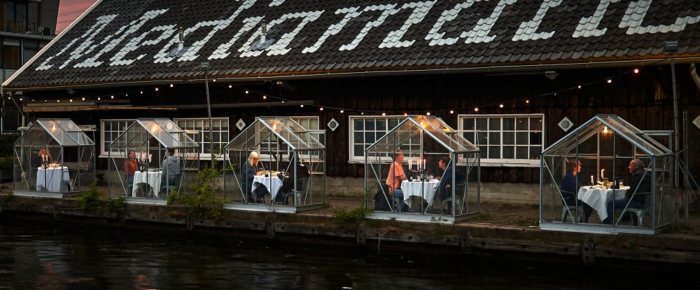 O restaurante Mediamatic ETEN, em Amsterdã, reabriu as portas no dia 21 de maio com uma solução inovadora em tempos de coronavírus: estufas individuais para receber pequenos grupos de 2 ou 3 clientes.