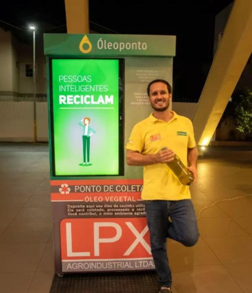“Nosso produto é uma máquina 100% autônoma que coleta o óleo e atribui pontos ao usuário doador, que pode depois trocar esses pontos por produtos em estabelecimentos parceiros. A primeira ponta, portanto, é o nosso usuário: qualquer cidadão que cozinhe em casa e ficou sabendo da nossa solução, seja porque viu a máquina em um ponto de grande circulação na cidade, porque algum amigo compartilhou alguma ação em redes sociais ou porque viu algum de nossos anúncios. Esse usuário nunca teve incentivo algum para juntar o seu óleo usado e levar até algum ponto de coleta, mas agora consegue receber produtos como óleo novo, produtos de limpeza, etc., através de um sistema simples de bonificações. A outra ponta desse modelo de negócios é o coletor de óleo, que hoje foca sua atuação em restaurantes e grandes cozinhas”, explica.