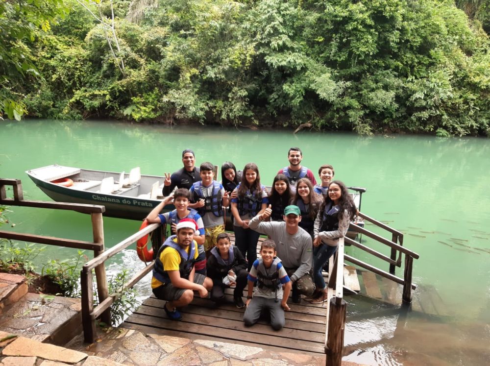 Os alunos conheceram a nascente do rio Olho d'Água, realizaram a trilha até o Mirante da Barra e fizeram o passeio de barco até o Deque de Pedras. Após o almoço visitaram os projetos ambientais acompanhados pelo biólogo Bruno Rocha.