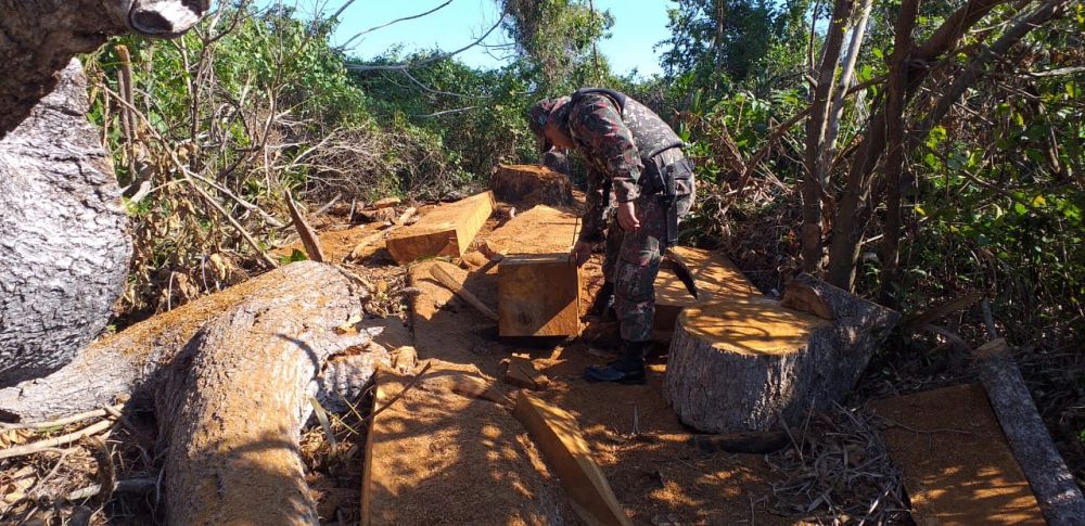 A Polícia Militar Ambiental de Corumbá realizava fiscalização fluvial no rio Paraguai e verificou uma árvore de grande porte derrubada na área de mata ciliar bem próxima à margem do rio, com a madeira sendo explorada em tábuas nesta segunda-feira (15).