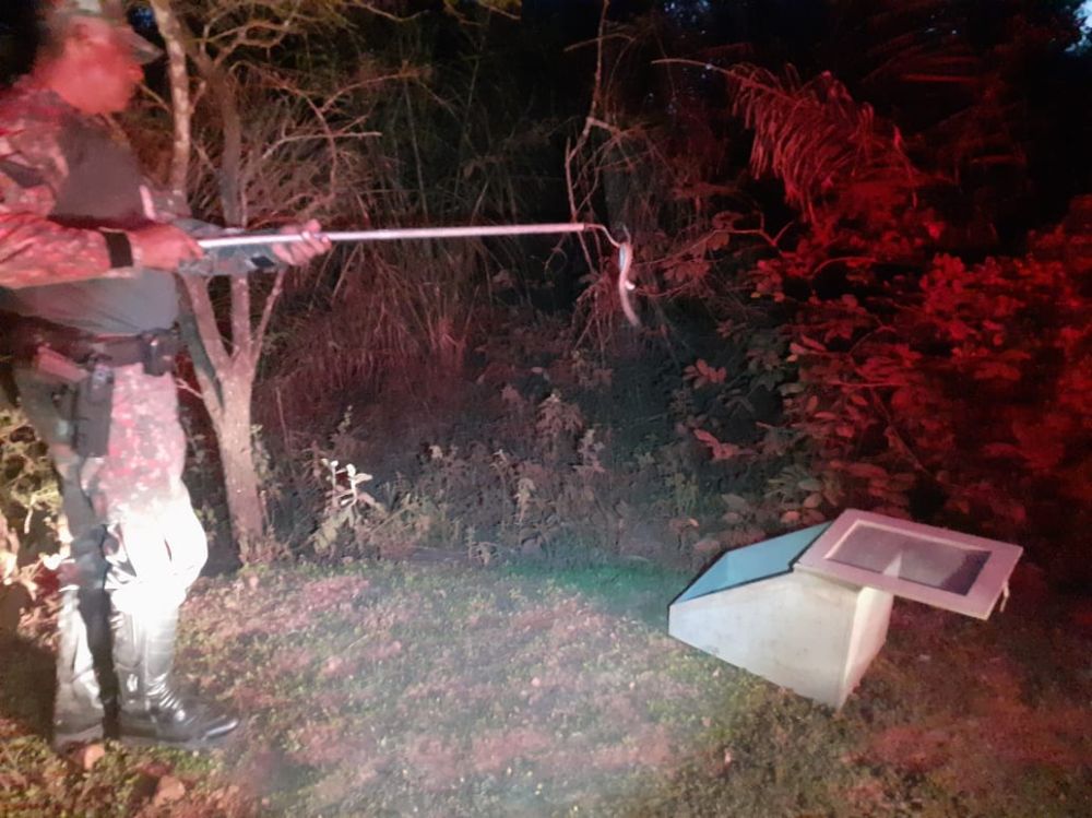 Equipe da Polícia Militar Ambiental de Bonito (MS) capturou na última segunda-feira (15), uma cobra cascavel, serpente da espécie Crotalus durissus, em uma residência localizada no centro de Bonito.