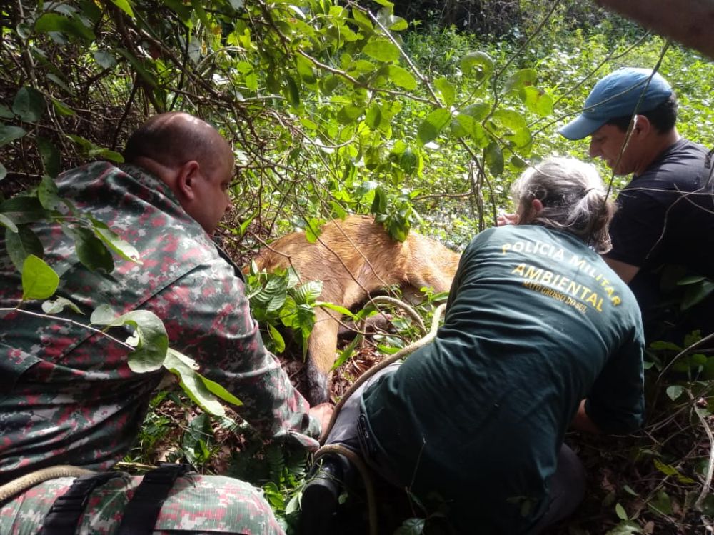 A Polícia Militar Ambiental de Miranda recebeu uma solicitação de ajuda de pessoas para verificar a situação de um cervo-do-pantanal que estaria extremamente debilitado e estava atraindo pessoas, que chegavam muito próximas para fotografar e filmá-lo, e por conta de problemas de saúde não conseguia se afastar.