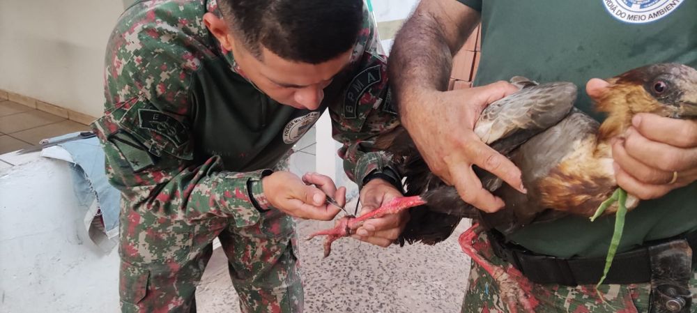 Com muito cuidado, os policiais conseguiram retirar a linha de náilon que estava enroscada nas patas da ave e já havia causado ferimentos. Se ficasse mais tempo, com o movimento do animal, a linha iria amputar uma das patas. A equipe pediu atendimento de um médico veterinário à Curicaca, o qual tratou o ferimento e atestou que a ave poderia ser devolvida à natureza.