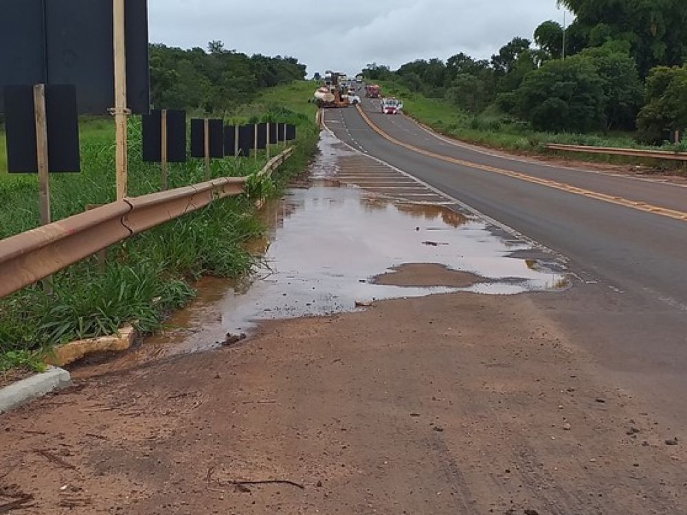 No local, os policiais verificaram que um veículo Tractor com uma carreta bitrem do tipo tanque acoplada transportando 44.266 litros de etanol, pertencente a uma empresa com sede em Maracaju, havia se envolvido em um acidente de trânsito com outra carreta que transportava maquina agrícola, causando derramamento de todos os 22 mil litros do combustível de uma composição atingida sobre a vegetação à margem da rodovia e de matas ciliares (Área Preservação Permanente-APP) do córrego Moeda, que também teve suas águas atingidas.