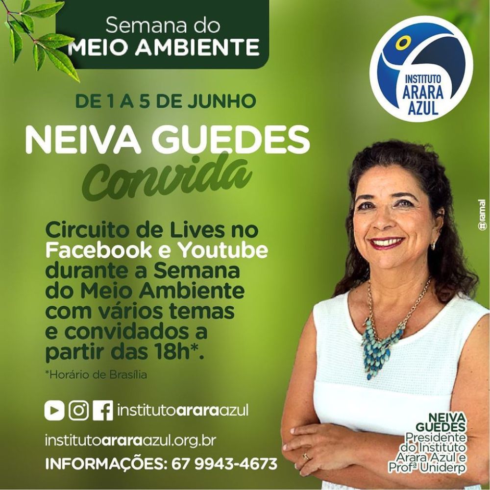 O Instituto Arara Azul realizará de 1º a 5 de junho, às 18h (horário de Brasília) um circuito de lives em comemoração à Semana do Meio Ambiente.
