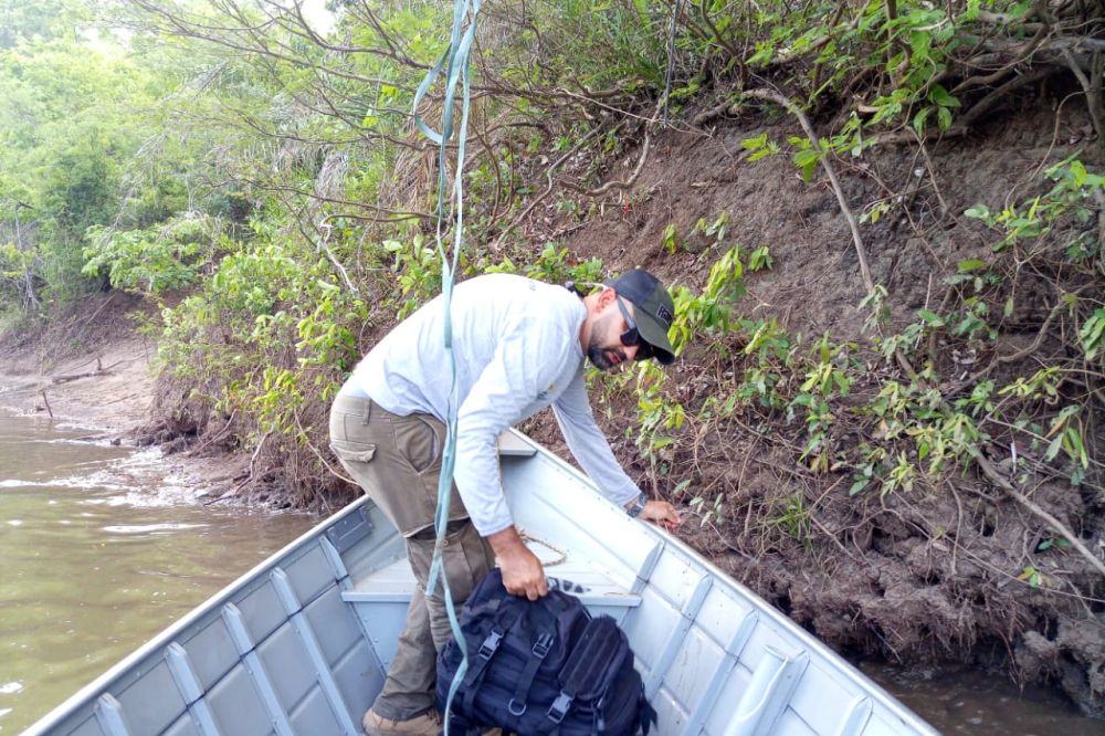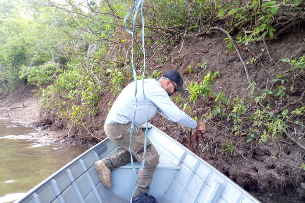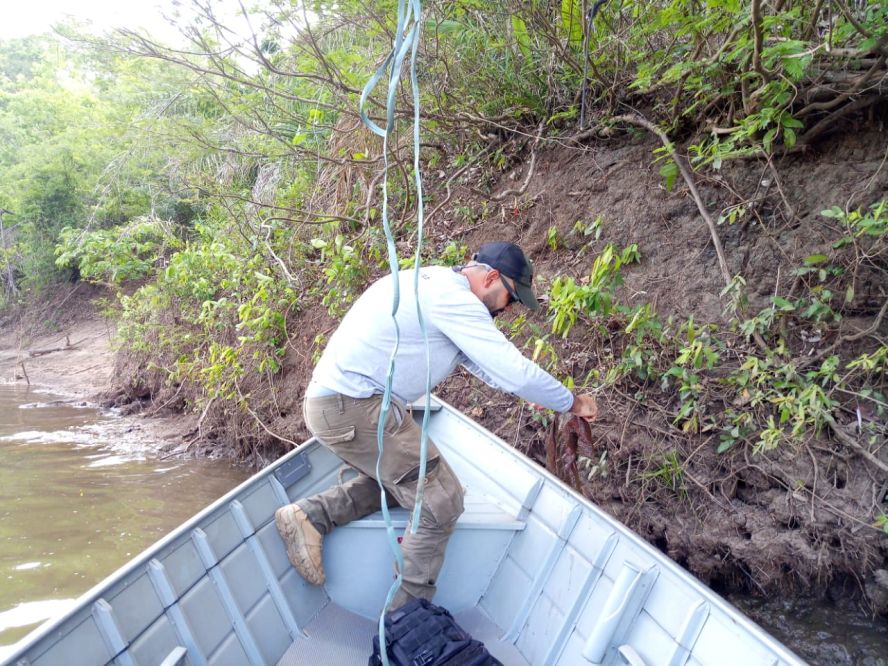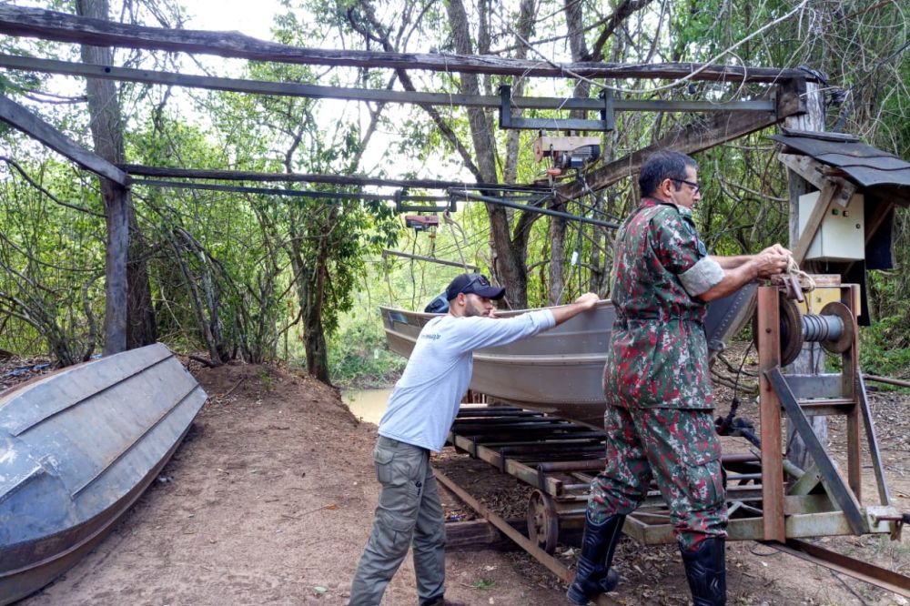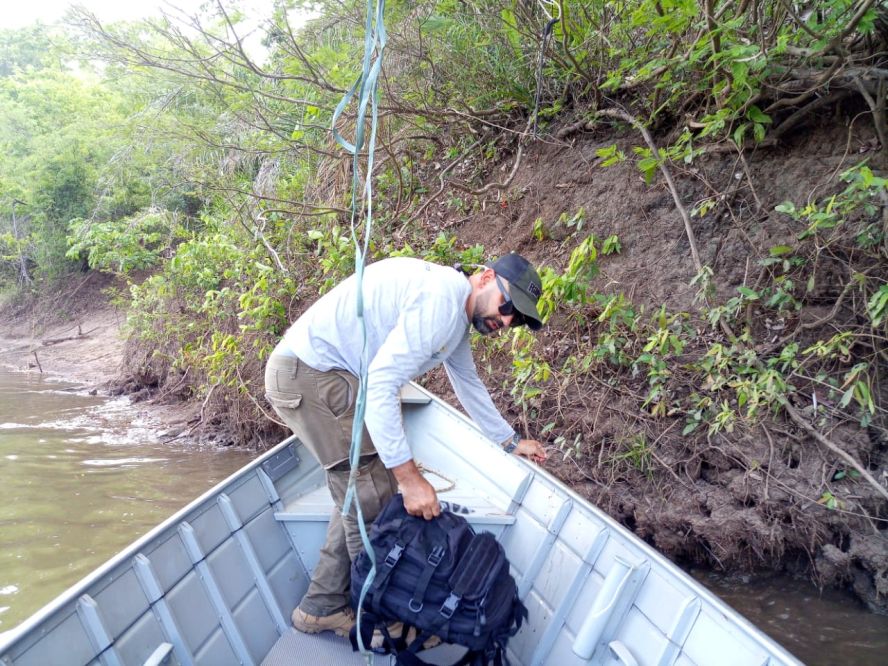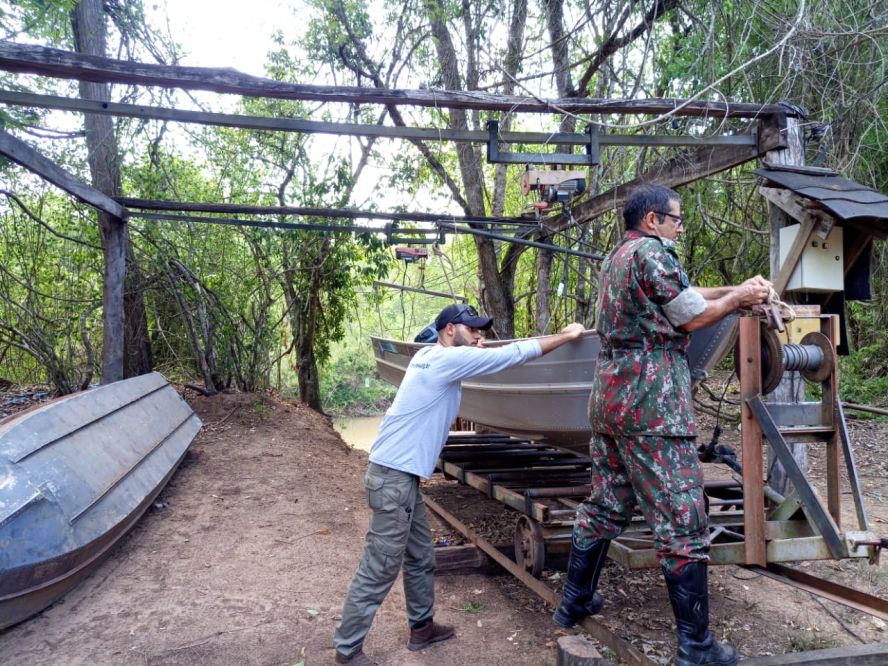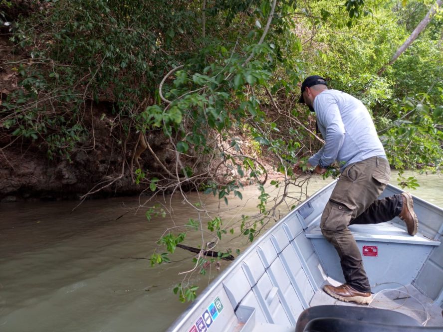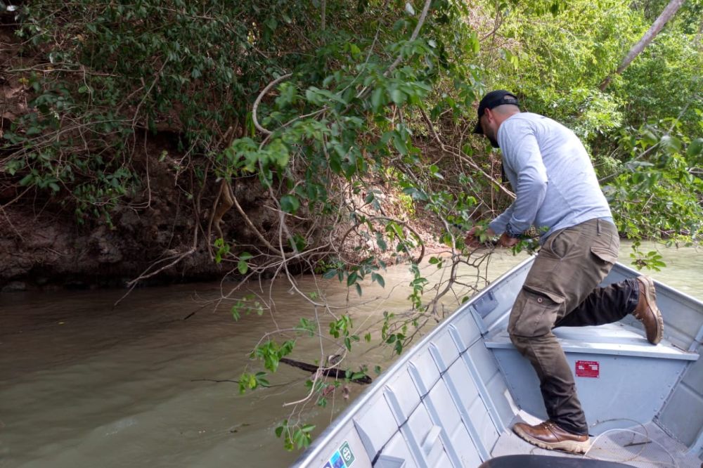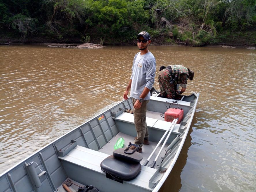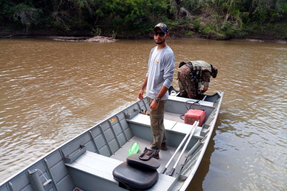 O biólogo Sérgio Eduardo Barreto de Aguiar, do Instituto Homem Pantaneiro (IHP), acompanhado pelo técnico em monitoramento, Josiel de Oliveira e pelo Cabo da Polícia Militar Ambiental, Albuquerque, realizaram na última terça-feira (26) um monitoramento fluvial no rio da Prata (Jardim-MS).