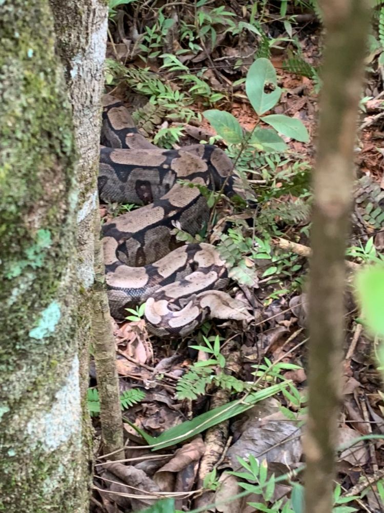 Uma serpente da espécie Boa constrictor (jiboia) com mais de dois metros, a terceira este ano, foi capturada nesta terça-feira (02) no início da tarde em uma residência no centro da cidade de Bonito. A Polícia Militar Ambiental foi ao local depois que a proprietária da residência telefonou solicitando a captura da serpente de grande porte que estava na varanda da frente da casa.