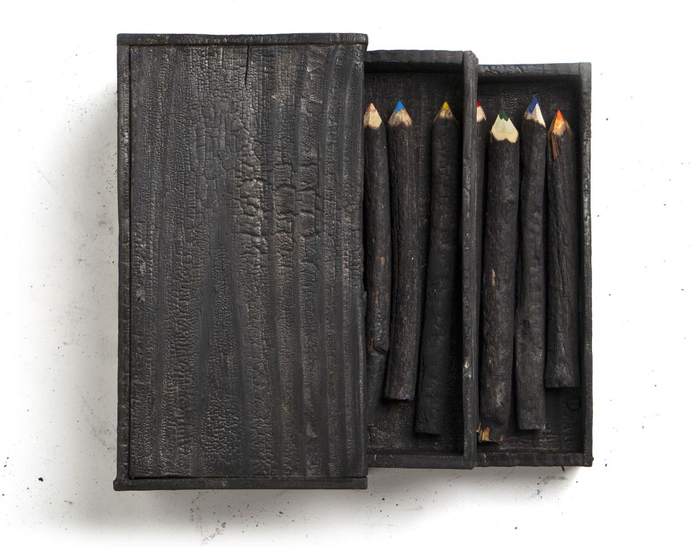 Os lápis foram feitos pelo artesão Marcello Sellan com restos de madeiras nativas carbonizadas nas queimadas do Pantanal. São árvores raras e especiais, como Manduvi, Zimbuva e Aroeira, que correm risco de extinção.