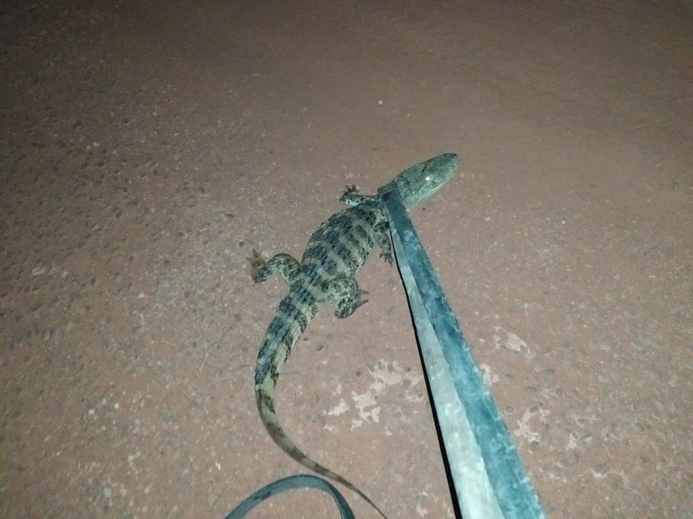 De acordo com os policiais, o animal tinha cerca de 1,50 metro e não apresentava ferimentos. A captura foi feita com uso de cambões e o réptil foi solto no Pantanal.