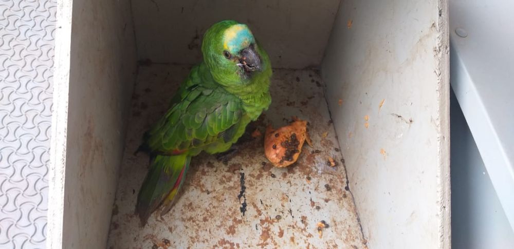 A Polícia Militar Ambiental de Bonito (MS) resgatou no último domingo um papagaio no Bairro Nossa Senhora Aparecida. Um morador acionou a equipe após o animal aparecer próximo à sua residência, apresentando dificuldades de locomação.