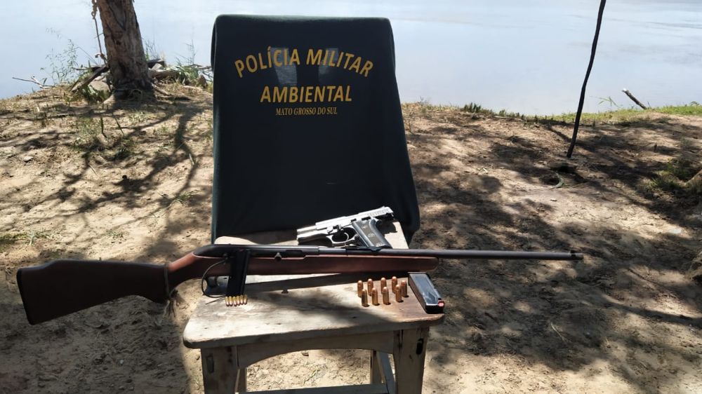 Na última quinta-feira (26), uma equipe da Polícia Militar Ambiental de Mundo Novo prendeu quatro bolivianos por pesca predatória no rio Paraguai. Nesta sexta-feira (27), dando continuidade à operação, desmontaram um acampamento à margem do rio Paraguai, a aproximadamente 300 km de distância de Corumbá pelo rio, e apreenderam armas ilegais.