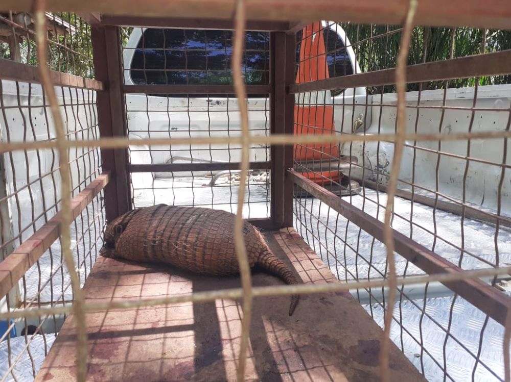 A Polícia Militar Ambiental de Bonito (MS) resgatou na última segunda-feira (6) um tatu-peba (Euphractus sexcinctus) que se encontrava na rodovia MS 178 que liga Bonito a Bodoquena.