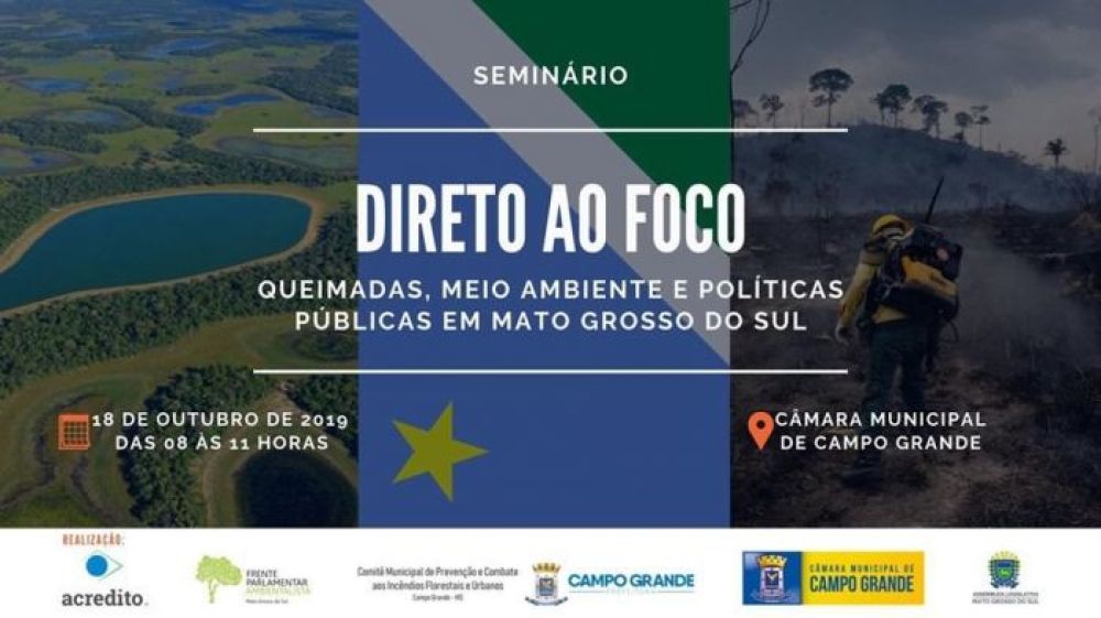 O tema do seminário que ocorre nesta sexta-feira (18), das 08:00 às 11:00, no plenarinho da Câmara Municipal de Campo Grande, é “Direto ao foco – queimadas, meio ambiente e políticas públicas”. Durante o evento, serão apresentados trabalhos desenvolvidos pelo poder público municipal, estadual e terceiro setor para combate e conscientização dos males que a prática criminosa do fogo provoca.