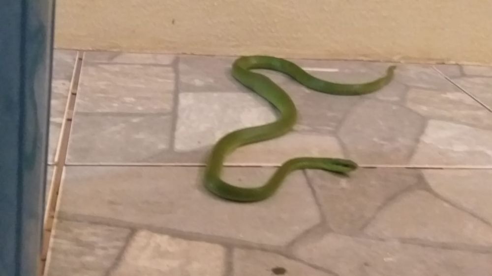 O proprietário (39) da agência, localizada na rua XV de novembro acionou a PMA, que foi ao local rapidamente, e com auxílio de funcionários, depois de muito trabalho devido a rapidez e a habilidade de se esconder facilmente do animal, capturou a serpente da espécie Liophis typhlus (cobra-verde).