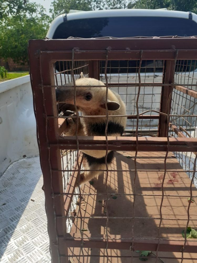 Moradores da rua XV de novembro acionaram a Polícia Militar Ambiental de Bonito no último sábado (7) no meio da manhã, informando que um animal da espécie Tamandua tetradactyla (Tamanduá-mirim) encontrava-se perambulando pela rua com um ferimento.