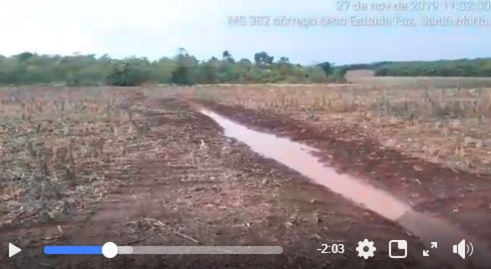 O técnico da Agência de Desenvolvimento Agrário e Extensão Rural - Agraer de Bonito (MS), o engenheiro agrônomo Paulo Sérgio Gimenes, compartilhou um vídeo nesta quarta-feira (27) no qual mostra o trabalho de conservação de solo e água realizado na Fazenda Santa Marta, após o registro de 60mm de chuva na região.