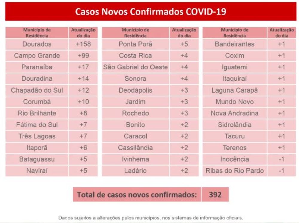 O boletim epidemiológico divulgado nesta sexta-feira (19) pela Secretaria de Saúde de Mato Grosso do Sul (SES) revela que há mil casos confirmados de coronavírus no Estado.