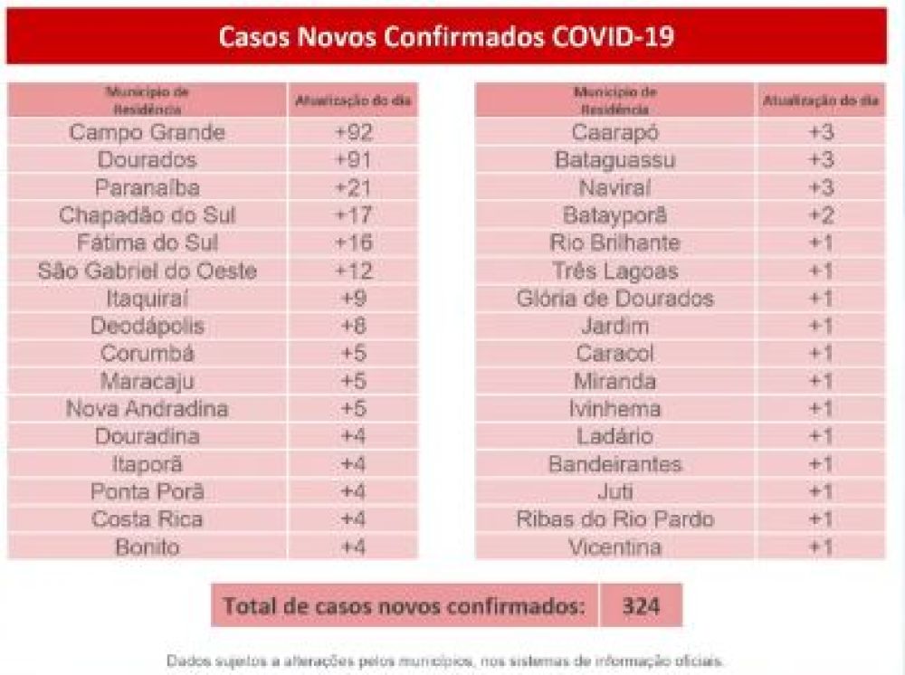 O boletim epidemiológico divulgado neste sábado (20) pela Secretaria de Saúde de Mato Grosso do Sul (SES) revela que há 4.999 mil casos confirmados de coronavírus no Estado.