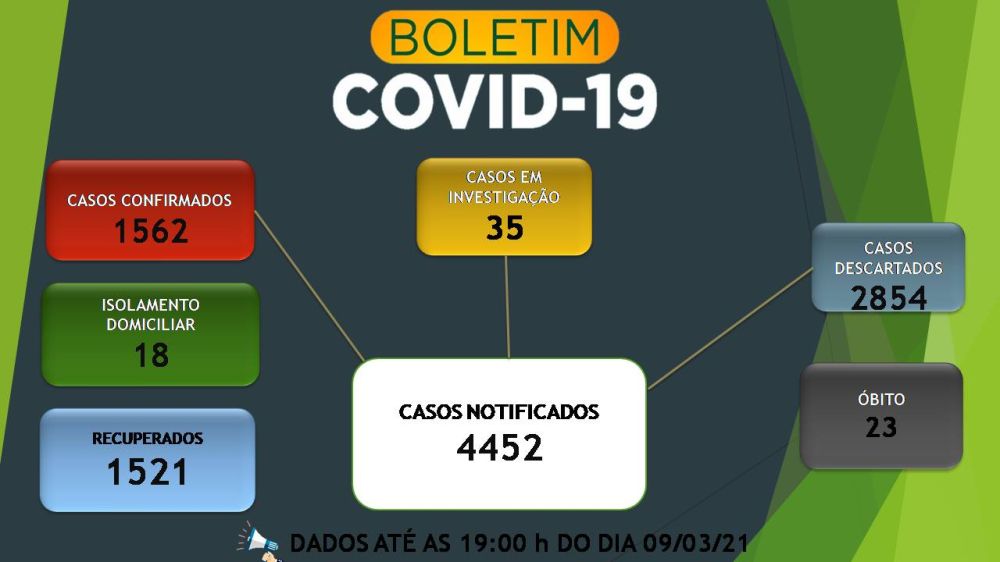 Ainda segundo o boletim, 4.452 casos foram notificados, 2.854 foram descartados, 18 estão em isolamento, 35 estão em investigação e foram registrados 23 óbitos.