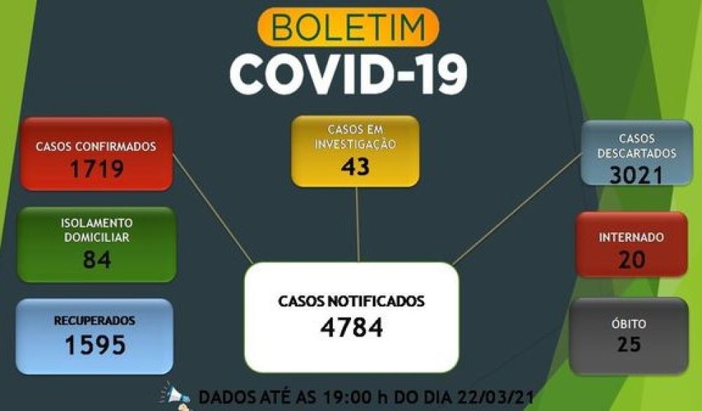 Ainda segundo o boletim, 4.784 casos foram notificados, 3.021 foram descartados, 84 estão em isolamento, 43 estão em investigação, 20 estão internados e foram registrados 25 óbitos.