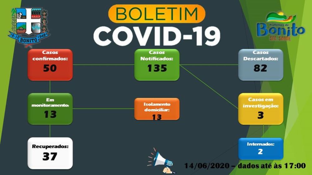Dados divulgados pela Secretaria Municipal de Saúde de Bonito (MS) no último domingo, revelam que há 50 casos confirmados de Covid-19, sendo que destes 37 já estão recuperados.