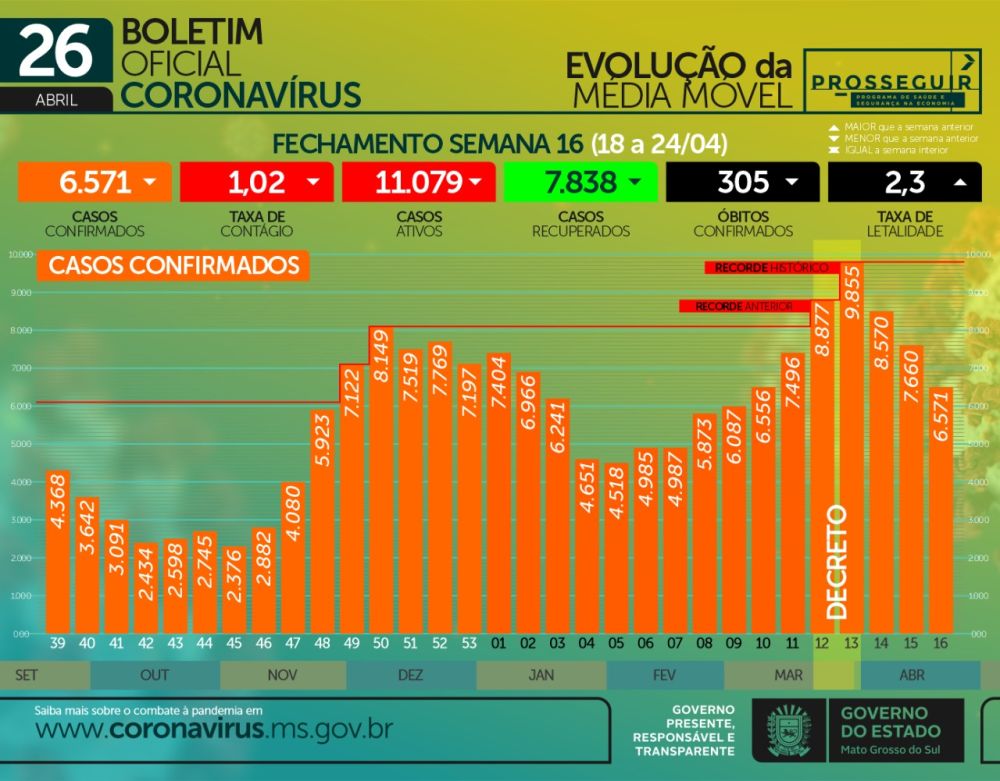 Na live do Governo do Estado da última segunda-feira (26), o secretário de Saúde Geraldo Resende apontou dados que demonstram que ações de imunização em conjunto com decretos publicados pelo Governo de MS repercutiram em bons resultados, diminuindo a curva de contágio da Covid-19 em Mato Grosso do Sul. Mesmo estando longe do ideal, ações deste tipo são fundamentais para conter a pandemia. "