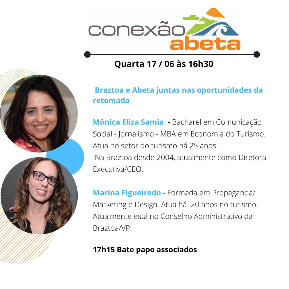 O tema da conversa de hoje será o que a Braztoa (Associação Brasileira de Operadores de Turismo) e a ABETA estão fazendo juntas para a retomada segura do turismo pós-pandemia.