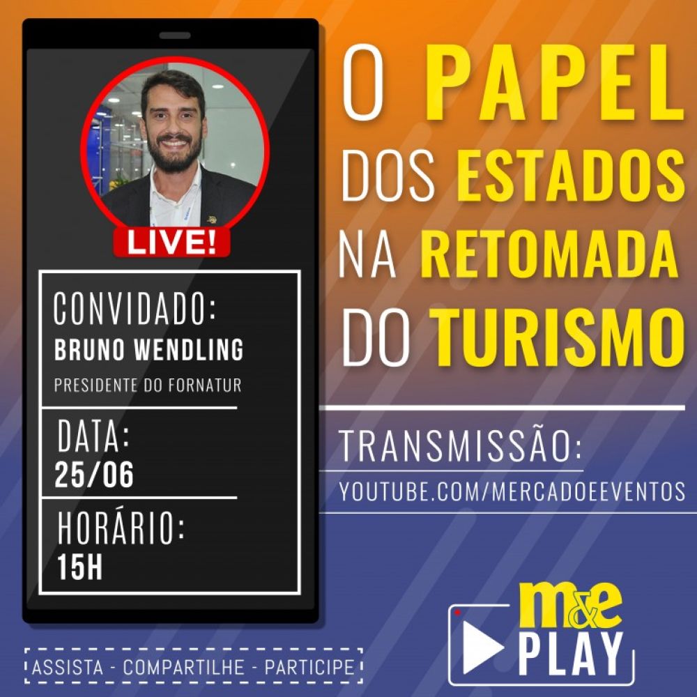 O portal Mercado e Eventos realiza nesta quinta-feira (25), a partir das 15h (horário de Brasília), a LIVE: "O Papel dos Estados na retomada do turismo".