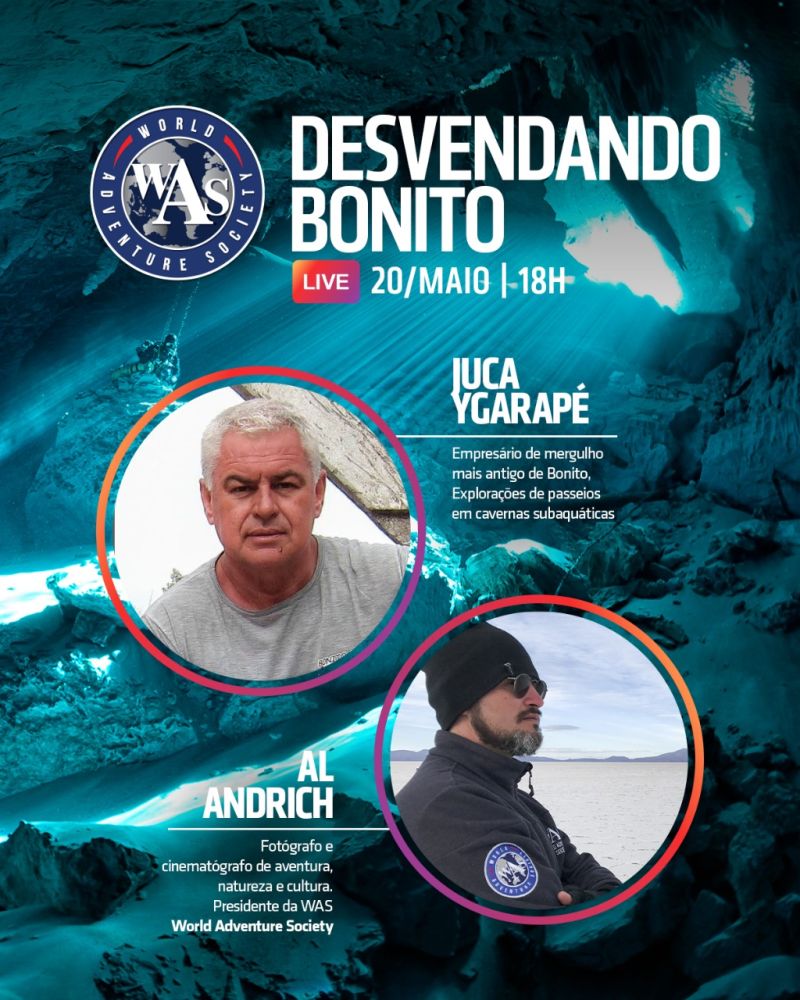O evento é uma realização da World Adventure Society (WAS). Será apresentada pelo presidente Al Andrich e contará com a participação de Juca Ygarapé, empresário de mergulho e proprietário da agência Ygarapé, em Bonito (MS).