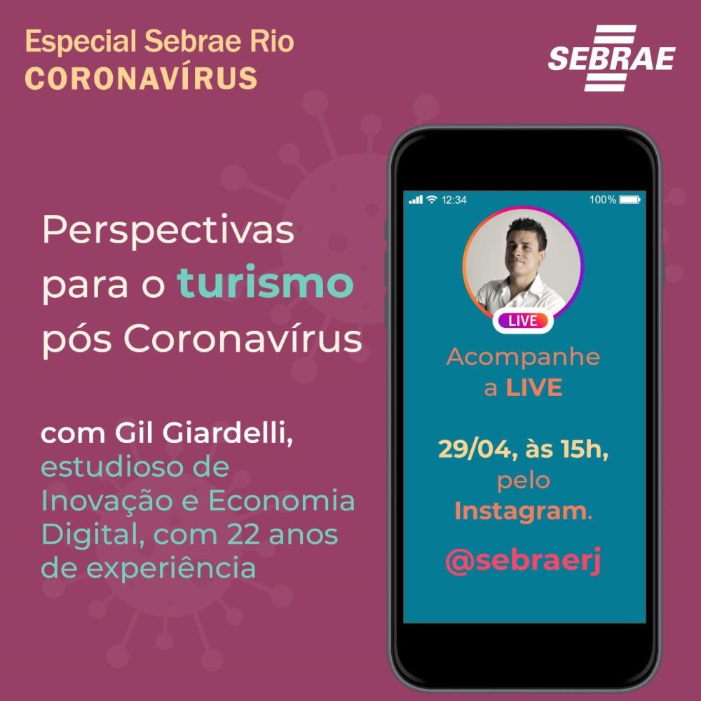A unidade do Sebrae no Rio de Janeiro realiza nesta quarta-feira (29) a Live "Perspectivas para o Turismo pós Coronavírus".